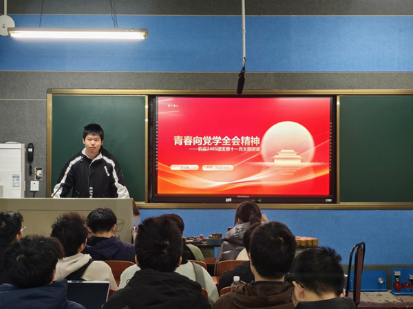 为引导青年团员深入学习党的二十届四中全会精神,激励青年团员在“十五五”规划开局之际挺膺担当,11月17日,机设2405团支部于西配楼111教室举办“学习贯彻党的二十届四中全会精神”主题团日活动,本次活动由组织委员张仕炜主持,团支部全体成员参与。
