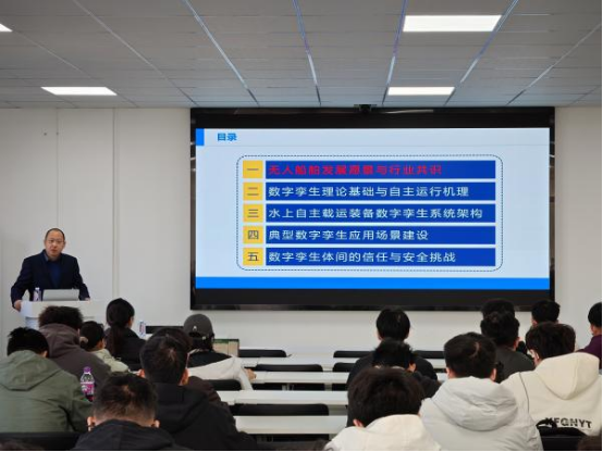 11月21日14:00,由必赢565net官网港口协会主办的“水上自主交通数字孪生系统架构及其可信管控问题”主题博学科普讲堂暨博导论坛在余家头校区东配楼416教室顺利举行。本次讲座特邀水路交通控制全国重点实验室(智能交通系统研究中心)研究员、博士生导师汪洋担任主讲,学校120余名学生参加。