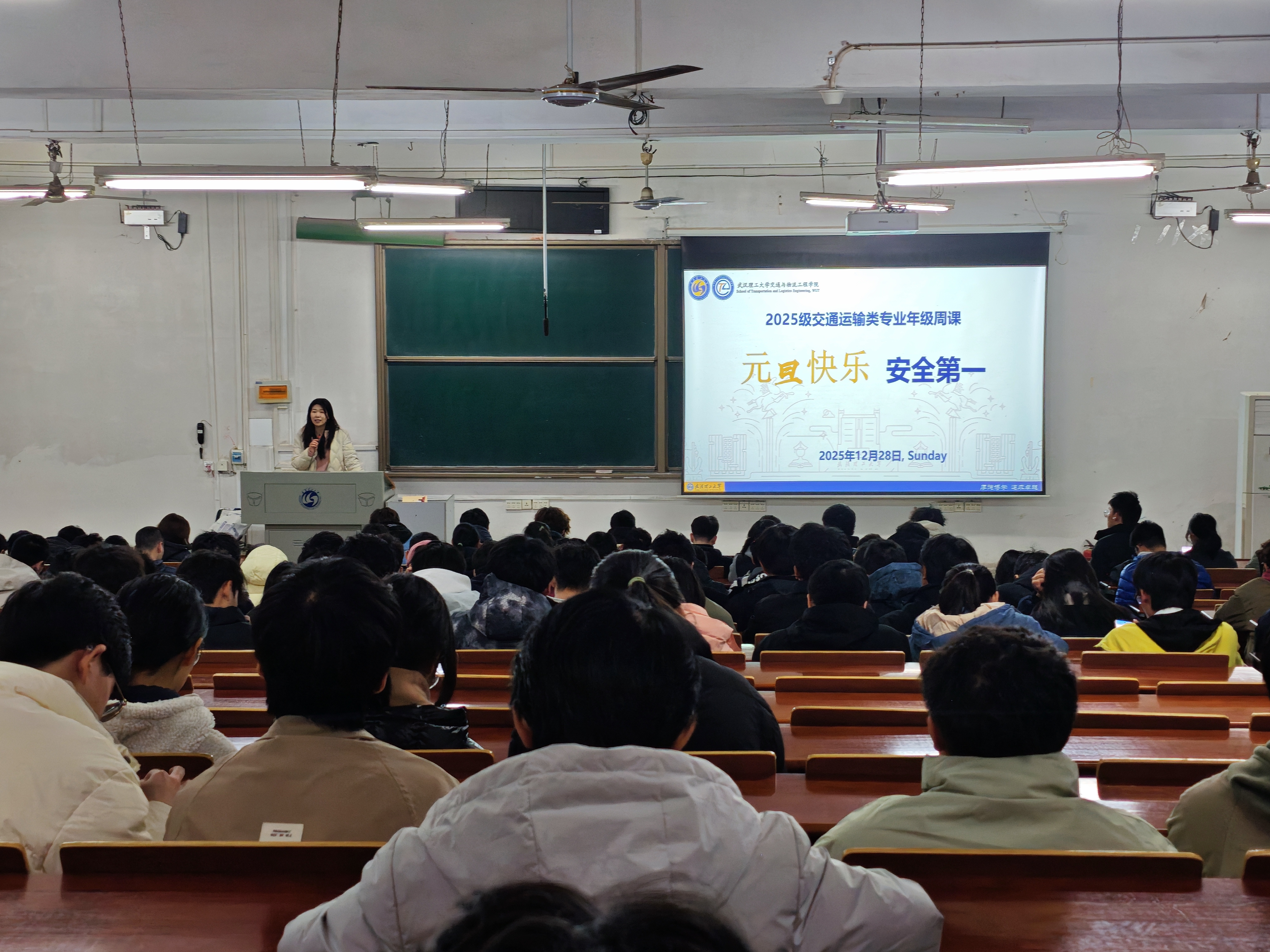 12月14日,2025级交通运输类专业、交运博学班年级周课在东配楼101教室顺利开展。本次周课由辅导员孙研老师主讲,全体同学参与学习。