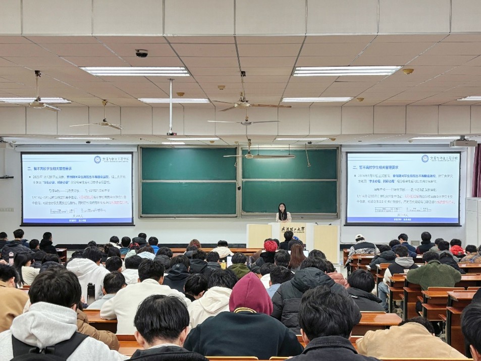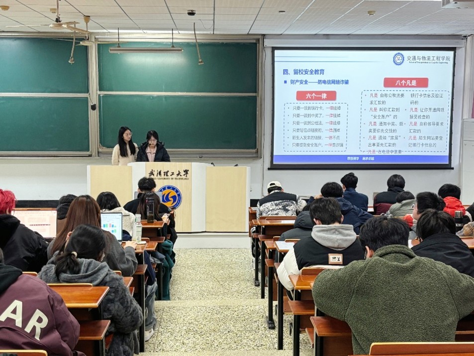 1月13日,565net必赢客户端在航海楼107举办寒假留校学生安全教育研学讲堂。本次讲堂由2025级研究生辅导员杜茜娅老师担任主讲人,全体留校研究生参与。