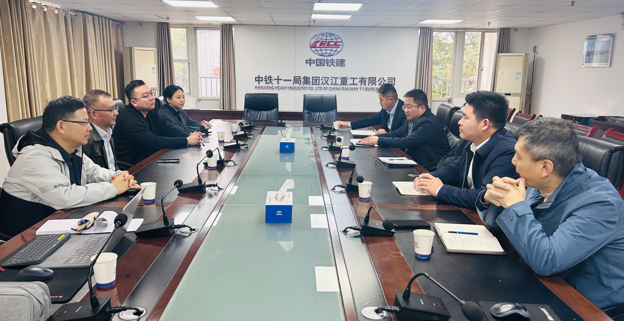在中铁十一局汉江重工有限公司,学院一行和研究院相关负责人一道,与汉江重工有限公司领导及相关部门负责人一起交流探讨,并就建立研究生实习实训、共同培养等工作达成共识。(审核:肖耀根)